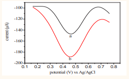 The electro catalytic oxidation of ascorbic acid (cyclic and differential pulse voltammetry) was investigated with a carbon nanotube paste electrode modified with 2,2’-[1,2-ethanediylbis (nitriloethylidine)]-bis-hydroquinone. Using DPV, the calibration curves for ascorbic acid and uric acid were obtained over the ranges 0.1-800 μM and 20-700 μM, respectively [24]. Differential pulse voltammetry with a poly (sulfonazo III) modified glassy carbon electrode enables the highly selective determination of ascorbic acid, dopamine and uric acid [25].