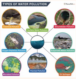 Physical Pollutants: These include materials and conditions that affect the physical properties of water. Suspended Solids: Silt, sediment, and other insoluble particles from soil erosion and industrial discharge increase water turbidity (cloudiness). This blocks sunlight from reaching aquatic plants and can clog the gills of fish.Thermal Pollution: The release of heated water from power plants and industrial facilities raises the temperature of water bodies. Warmer water holds less dissolved oxygen, stressing or killing fish and other aquatic organisms that have specific temperature requirements. Solid Waste: Trash such as plastic bags, bottles, and other debris can choke, entangle, and poison wildlife. Over time, plastics break down into microplastics, which can be ingested by aquatic life and enter the human food chain [21].