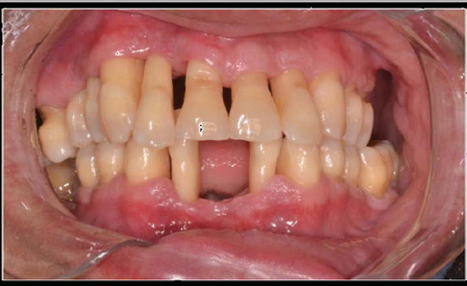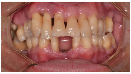 A 36-year-old male patient, melanoderma, was referred to the Specialization Course in Periodontics at the UFRGS Dental Clinic, complaining of marked mobility in all teeth of the mouth (Figure 1 and 2).