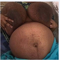 Risk factors for breast hypertrophy have not been well understood but it is seen more commonly in Caucasians, obese and multiparous women [2]. Gestational gigantomastia can occur in any pregnancy with a tendency to recur in subsequent pregnancy. Swelstad et al., reported a recurrence rate of 100 percent in the women who underwent breast reduction mammoplasty [7].