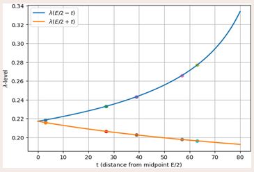 • The curve represents \lambda\!\left(\tfrac{E}{2}-t\right)-\lambda\!\left(\tfrac{E}{2}+t\ right).\lambda(E/2-t)=\lambda(E/2+t).