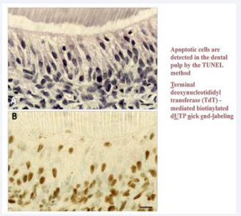 Extensive cell death and tissue necrosis, also called coagulation necrosis, may also occur. More recently, a cascade of three stages was identified. There is actually a need for redefinitions of the physiopathological events, which might occur. Necrosis provokes a slight irritation and stimulates pulp repair. Cell migration and proliferation control mesenchymal and endothelial pulp cells, and also the formation of collagen. Necrosis affected pulp cells. Caspases exist in an active proform in the cytosol. Pyroptosis is a physiologically important form of cell death. Apoptosis or programed cell death is an active process characterized by cell shrinkage, membrane blebbing, formation of apoptotic cell bodies, chromatin condensation and genomic fragmentation [22].