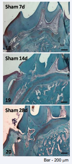 Figure 18-20 Sham 7days to 28 days: the mesial horn and the isthmus are filled by mineralized tissue. Bar= 200μm.