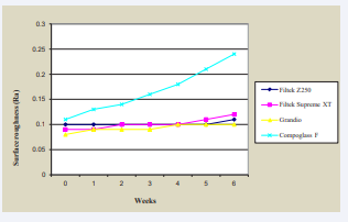 2. Surface roughness of Compoglass F reach a critical threshold value of 0.2 μm after 2 weeks of bleaching with 20% CP and after 5 weeks using 10% CP.