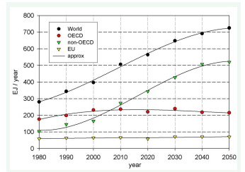 Table 1: Primary energy consumption [3,4] (EJ/year)