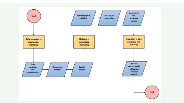 Integration of data processing and modeling includes processes such as iterative process which combines data processing with modeling to refine model inputs and validate outputs against observed data, model calibration which adjusts model parameters to match observed groundwater behavior and improve model accuracy and scenario analysis which uses models to explore alternative management scenarios, evaluate impacts of land use changes or climate scenarios on groundwater resources, and support decision-making processes [5,54].