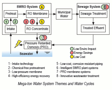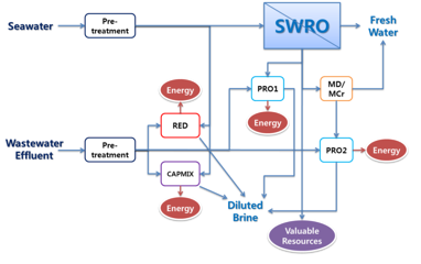 the project incorporates the use of better pretreatment techniques and pressure retarded osmosis (PRO) to reduce fouling and to harness energy, respectively. The basic concept of SEAHERO project shown in Figure1(c)