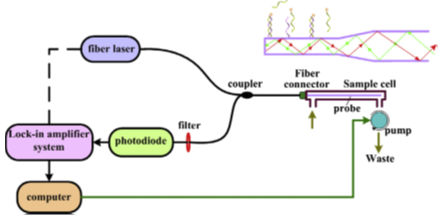 Figure 6: Schematic illustration of the evanescent wave fiber biosensor system. Reprinted from Xiao et al. [43] (Copyright 2014) with permission from Elsevier.