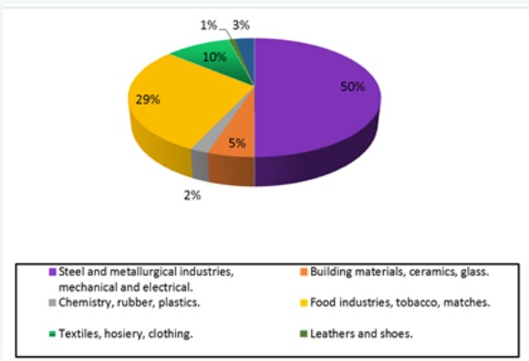 Algeria’s industry has experienced sustained development in terms of its diversity and capacity [Figure 3]. Steel and metallurgical industries account for half of the industrial activities. However, these issues have not been addressed in industrial processes. Before the promulgation of Law 83-18 of 1983 relating to environmental protection, industrial pro-jects were conducted without environmental impact studies. Close to labor pools, communication routes, and amenities [14,15]. This situation is harmful to the environment and public health.
