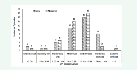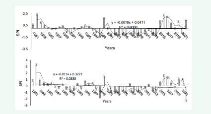 SPI is a critical indicator of changing climatic conditions, especially extreme weather conditions (Table 2). Persistent dry SPI episodes show that rainfall is declining, given that tropical livelihood activities are mostly rained.