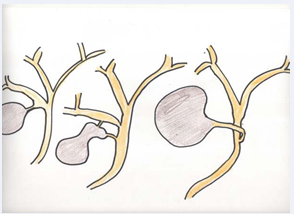 E-type lesions are the most severe because there is a loss of tissue of the common liver duct and almost always they occur on the level with the bifurcation. These injuries are frequently associated with vascular section which mainly concerns the right hepatic artery. Unlike the liver, bile ducts are supplied only by arteries [15]. The transverse marginal artery, also called “comunicating arcade” (Figure 5)