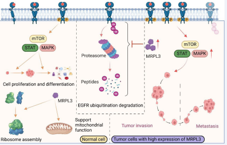 FG and CLQ conceived and designed the study. RC, SXQ, KJL, and HHS performed the cellular and molecular experiments, including assays related to MRPL3 and EGFR ubiquitination. HJ, SWQ, XHX, and TF contributed to bioinformatics analysis and statistical data interpretation. RC carried out the immunoassays related to EGFR expression. HJ participated in the design of the sequence alignment experiments. RC and HJ wrote the initial draft of the manuscript, while FG and MFZ provided critical revisions and supervised the research. All authors reviewed and approved the final version of the manuscript.