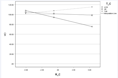 Although the overall model, which aimed at determining whether resilience predicts MD and testing whether Team Dynamics was a moderator, did not significantly predict MD, F(11, 178) = 1.71, p = .114, explaining 8.71% of the variance in MD (R² = .0871), the interaction term between resilience and teamwork was significant, B = .27, SE = .11, t = 2.35, p = .02. This suggests that the effect of resilience on MD is moderated by teamwork, such that lower levels of teamwork amplify the influence of resilience on reducing MD. Conditional effects analysis at the 16th, 50th, and 84th percentiles of teamwork revealed that the effect of resilience on MD was significantly negative at the 16th percentile of team dynamics (B = -3.12, SE = 1.43, p = .03), non-significant at the median (B = -.59, SE = .89, p = .51), and positive but non- significant at the 84th percentile (B = 1.2840, SE = 1.18, p = .28). These findings indicate that higher resilience is significantly associated with lower MD when team dynamics are low. See (Figure 1) for statistical model.