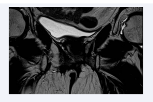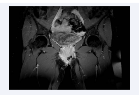 Figure 2: Pelvic MRI with constrast showing ovoidal lesion 33 x 16 mm.