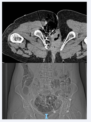 Following a multidisciplinary discussion, considering the significant pain symptoms severely affecting the patient’s quality of life, she was selected for cryoablation of the pelvic lesion (Figure 2-4), which was subsequently performed in January 2024. MRIs performed in February and April 2024 showed stable disease. Currently, the patient is under oncological follow-up, with significant pain relief managed by paracetamol and codeine.