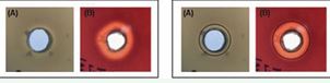 After detecting the type of hemolysis, we quantitatively estimated this hemolytic activity. Sterile 5mm diameter wells were dug in the blood agar. Then, using the 24h cultures of enterococci on TSB liquid medium, a volume of 50µl was transferred to the wells already prepared on blood agar. After incubation at 37°C for 24h, we measured the diameter of the hemolysis halo around each well.