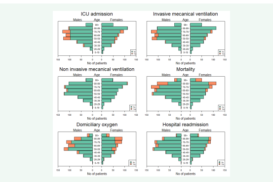 The primary outcome was death or survival, with the patient being discharged from hospital at the end of hospital stay. Other secondary outcomes were presence or absence of complications and need of critical care, with or without invasive respiratory support; finally, functional outcomes on discharge were also assessed (discharged home/health facility, able to look after oneself/unable, health status as previous to illness/different), as well as admission to home-care hospitalization.