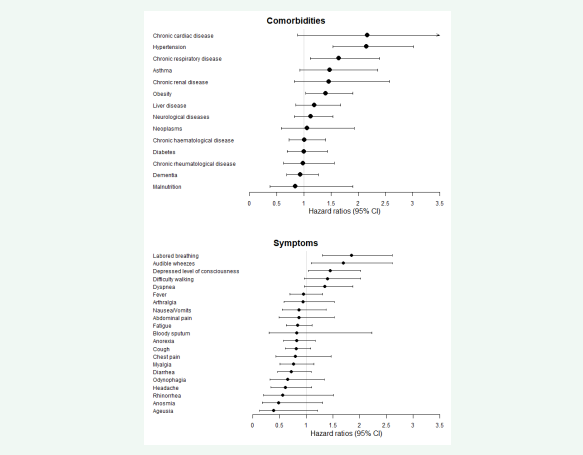 Several tools have been used to characterize and disseminate scientific information, with timely data sharing being critical to generate a body of knowledge and tackle the novel disease [8,9]. During this process, the utilization of established methods of data collection has been widely recommended [10]. One of these tools is the ISARIC Clinical Characterization Protocol, which has demonstrated its usefulness in several scenarios [11- 15]. In this respect, an analysis of detailed information based on the ISARIC standardized form and collected in a community hospital, regarding their experience during Covid-19 pandemic, could yield valuable insights into the clinical presentation, potential risk factors, and disease progression within a particular population. Moreover, the parameters and estimates obtained in the study can be used in future meta-analyses and global-scale studies, facilitating the comparison of findings across diverse regions, and contribute to the understanding of COVID-19 and its management.