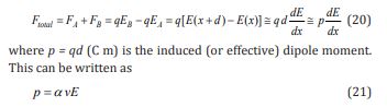 where the subscript signifies that this equation is applicable for a constant (DC) signal applied to electrodes and is positive, (i.e. acting towards the right). Expressions for the net force acting on a neutral biomolecule in a nonuniform electric field have also been developed using the energy variation principle and Maxwell stress tensor approach - see discussion [46]. The effective moment method is the most straightforward, and includes situations where there is dielectric loss.