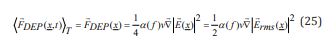 where ... T denotes ‘small-time’ average over a RF electric field oscillation period, T =1 / f . In (23) the second and last terms result from combining (6) and (7) for Maxwell-Wagner polarisation for a sphere with radius, r, and volume, 3 v r = 4 /3 π .