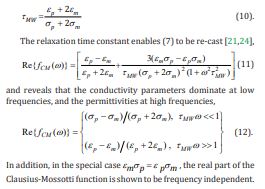 The cross-over frequency is shown in (Figure 6) to be slightly above 3 MHz. Analysis of the transient response of the sphere to an electric field reveals a MW relaxation time constant τMW associated with free charge storage at the spherical interface [21]