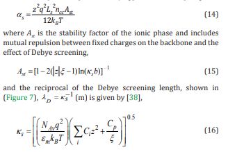 where Ast is the stability factor of the ionic phase and includes mutual repulsion between fixed charges on the backbone and the effect of Debye screening, where Ast is the stability factor of the ionic phase and includes mutual repulsion between fixed charges on the backbone and the effect of Debye screening,