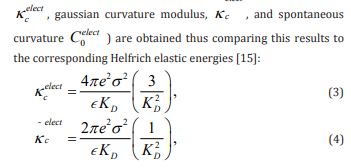 κ c , gaussian curvature modulus, elect κ c ? , and spontaneous curvature 0 elect C ) are obtained thus comparing this results to the corresponding Helfrich elastic energies [15]: