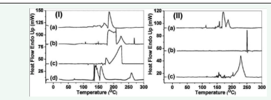 The DSC curves of FC-steroid conjugates (Figure 6 (II) (a)- (c)) present several intense endothermic peaks between 158– 249 ° C (see Table 2) with associated ?H between 35–752 J/g. These peaks can result from the melting of FC-steroid crystals, dissociation and decomposition of chitosan molecular chains.