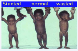The WHO recommends (Table-II)the use of Z-scores or Standard Deviation (SD) Scores for evaluating anthropometric data, so as to accurately classify individuals with indices below extreme percentile. A Marasmic child usually falls under severe and moderate wasting.