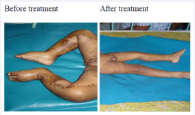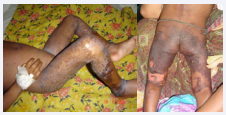 Figure 12 Disappearance of both oedema and dermatoses in malnutrition after protocolised management of SAM including skin treatment with zinc oxide and potassium permanganate.