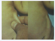 A grading of marasmus has been proposed as grade 1,loose skin fold in axilla and groin, Grade 2 loose skin fold in thigh, grade 3 wasting of chest and abdomen and grade 4 with wasting of buccal pad of fat giving the appearance of old man face. When marasmic children develop oedema it is termed as marasmic kwashiorkor.