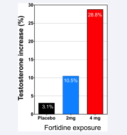 In every session (Placebo, 2mg (0.04%) and 4mg (0.08%)) when comparing n = 16 pre- exposure to n = 16 post-exposure an increasing testosterone level with increasing exposure to Fortidin can be observed. However, the statistical analysis of these n = 16 groups revealed no statistical significance on a p = 0.05 level in any of the sessions [8].