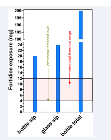 I have therefore studied how many milliliter has a sip of such a drink and which concentration of Fortidine in such a drink is required for retronasal application to achieve the same concentration in the nasal cavity as via the orthonasal application. A baverage on a black tea basis was used as a substrate in which the synthetic female pheromone Fortidin was diluted to a 0.08% solution. This 0.08% Fortitin baverage was bottled in 250 ml portions. The average sip from both, the bottle and the glas, was measured by weighing container after every sip. The amount of Fortidin to which the target tissue was exposed after every sip was calculated and compared to previous experiments, which documented the dose dependent testosterone response. The amount of Fortidin reaching the nasal cavity via the retronasal pathway was related to the application via the orthonasal pathway.