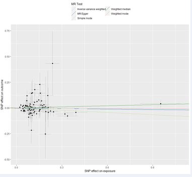 MR is a data analysis technique used for assessing causal inference in epidemiology. It evaluates the causal relationship between the exposure of interest and the outcome of concern by employing genetic variations as Instrumental Variables (IVs). Genetic loci are determined at the moment of conception and remain unaffected by postnatal factors. This determinism is the primary reason MR utilizes genetic loci as analytical tools. Selecting appropriate instrumental variables requires satisfying three conditions: First, instrumental variables must be independent of other confounding factors influencing the outcome variable. Second, instrumental variables should have a close association with the exposure factor. Third, there should be no correlation between instrumental variables and the outcome variable. To identify instrumental variables meeting these criteria, we established criteria based on the values of P, R2, and F-statistics. Since fewer SNPs were retained after applying the condition of P < 5*10-8, we modified the P-value requirement to P < 5*10-6. Subsequently, SNP independence settings were implemented. We performed Clump on all SNPs with the conditions set at Linkage Disequilibrium (LD) R2 < 0.001 and KB < 10 Mb. Finally, SNP statistics strength settings were applied, requiring F-statistics > 10 for all SNPs.