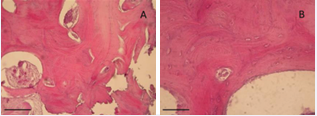 Sections 5 µm thick were prepared with a microtome (Leica Biosystem, Milan, Italy) and mounted on coated slides. Deparaffinization was performed using xylene, followed by graded ethanol washes and rehydration. Hematoxylin-eosin staining was then applied to assess new bone formation.