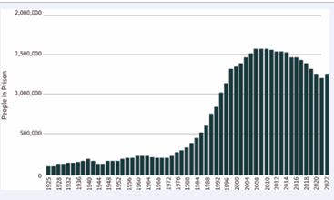 Figure 5 U.S. State and Federal Prison Population, 1925-2022 [7].