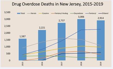 Figure 7 Incidence and cause of drug related deaths in state of New Jersey 2015 2019[58].