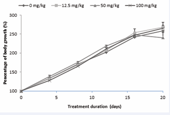 Figure 1 : Evolution of the body masses of the immature female rats treated with AEAb throughout the extract administration period.