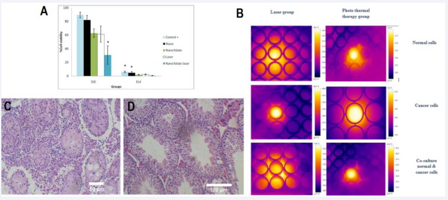 In an previous phase of our investigation, we explored the efficacy of Folate-Silica-Gold Nanorods (F-Si-GNRs) in targeting both mouse acute lymphoblastic leukemia (EL4 cancerous cell line) and spermatogonial cells to eradicate cancerous cells [5]. Gold Nanorods, a component of this novel approach, possess the unique ability to absorb both UV and infrared radiation, thereby generating heat, which plays a pivotal role in the destruction of cancer cells [6]. This mechanism aligns with previous pioneering work by Hirsch et al., who demonstrated the groundbreaking use of gold nanoparticles combined with laser therapy in targeting epithelial cells in human SKBr3 breast cancer [7]. Such interdisciplinary endeavors highlight the potential of nanotechnology-assisted therapies in revolutionizing cancer treatment paradigms.