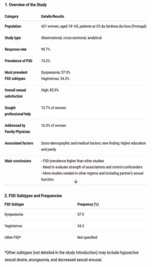 Recent data from Portugal reinforce this reality: in a sample of 421 women attending primary care, 34.3% presented vaginismus, highlighting the high frequency of the problem and the low rate of seeking professional help (15.7%) [3]. International research shows similar prevalence, ranging from 11.7% to 42% among women with sexual dysfunction [5,6], emphasizing the need for greater awareness and early diagnosis (Figure 1).