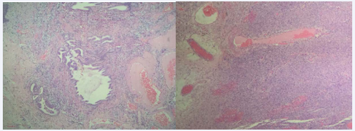 Figure 2 Histopathological examination evidencing müllerianadenosarcoma of the cervix. (Images obtained from the presented cases).