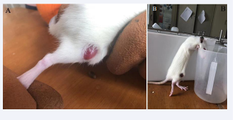 Figure 1: Swelling degree of right limb and standing condition of rats.