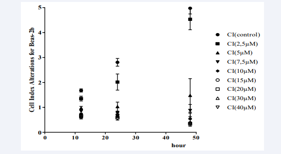 Figure 4 CI alterations in a time-dependent manner in Beas-2b cell line.