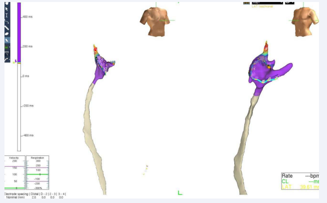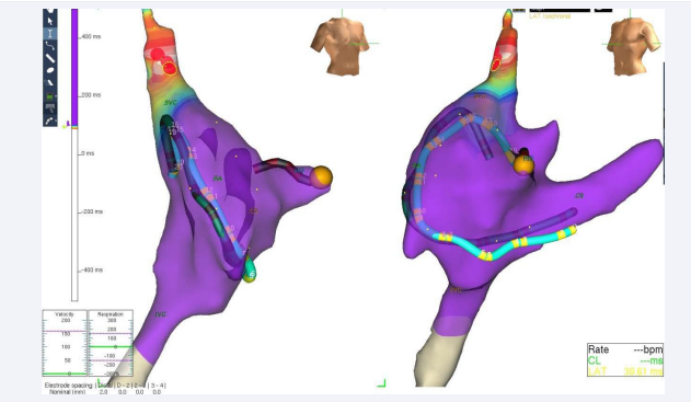 The tachycardia was mapped to the superior vena cava near where it meets the crista terminalis (Figure 3).