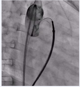 Figure 4: Fluoroscopic image showing the inflated PDA device in situ with no residual shunt across the defect.