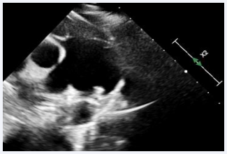 Figure 6: Post-procedure 2D echocardiography showing the PDA device in place.