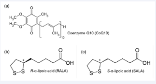 Figure 1: Chemical structures of CoQ10 (a), RALA (b) and SALA (c). The chiral center is marked with an asterisk (*).
