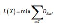 where T is the set of all sub-trees of graph G, e is an edge in tree T, and DEucl is the Euclidean distance corresponding to the edge e.