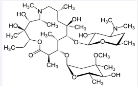 AZM is a macrolide antibiotic which inhibits bacterial protein synthesis and reduces the formation of biofilm. Accumulating effectively in cells, particularly phagocytes, it is delivered in high concentrations to sites of infection, as reflected in rapid plasma clearance and extensive tissue distribution. AZM is indicated for respiratory, urogenital, dermal and other bacterial infections, and exerts immune-modulatory effects in chronic inflammatory disorders, including diffuse panbronchiolitis, post-transplant bronchiolitis and rosacea [5].