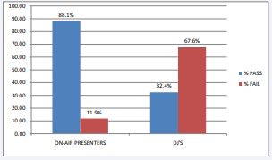 Figure 5: Results of DJ’s and On- air presenters who either passed or failed the test.